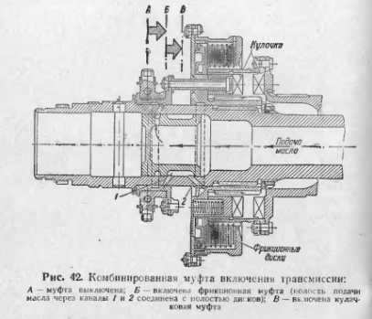 МУФТА ВКЛЮЧЕНИЯ ТРАНСМИССИИПередача крутящего момента от вала двигателя к несущему винту вертолета осуществляется, как известно, через муфту включения трансмиссии. Надо заметить, что при раскрутке несущего винта муфта включения преодолевает не только момент инерции винта и трансмиссии, но и силы трения в подшипниках валов и редукторах (главным образом в редукторах), которые существенно зависят от вязкости применяемых смазок. ![]() Обычно муфта включения комбинированная: плавность включения всей трансмиссии и раскрутку несущего винта обеспечивает фрикционная часть муфты, а уже после полного совпадения оборотов включается жесткая, кулачковая муфта. Управление муфтой включения может быть выполнено различным способом: механическим, гидравлическим, электромеханическим, электрогидравлическим. Вертолеты (Ми-1) имеют механическое управление муфтой а вертолеты Ми-4 — электромеханическое или электро- гидравлическое. Муфта включения трансмиссии (рис. 42) в эксплуатации является сравнительно слабым местом. Относится это в первую очередь к ее фрикционной части, представляющей набор металлокерамических и стальных дисков, которые при многократном включении муфты покрываются закоксовавшимся маслом, перегреваются и разрушаются. Перегрез дисков муфты и выход ее из строя происходит не только в результате закоксования дисков, а и при длительном времени раскрутки несущего винта. Для регулировки времени раскрутки на двигателях АШ-82В, устанавливаемых на вертолеты Ми-4, предусмотрен жиклер переменного сечения, при помощи которого можно создать необходимую для полной раскрутки несущего винта скорость подачи масла в муфту включения за достаточно короткое время и удовлетворительную плавность раскрутки. При этом перегрева дисков не происходит. Время раскрутки для каждого типа двигателей устанавливается различным, например, для двигателей АШ-82В оно должно быть от 17 до 60 сек. Если в течение этого времени число оборотов несущего винта (по прибору) не совпадет с числом оборотов двигателя, муфту следует выключить. Инструкции разрешают производить повторное включение муфты не раньше чем через 5 мин после ее выключения во избежание перегрева фрикционных дисков. Причиной увеличенного времени раскрутки несущего винта может быть неправильная установка жиклера переменного сечения, засорение каналов подвода масла к муфте, недостаточная вязкость масла и, наконец, закоксование дисков. В свою очередь увеличенное время раскрутки способствует при многократном включении муфты закоксованию дисков, так как приводит к повышению температуры муфты при работе. На работу муфты существенно влияет и состояние дисков. Фрикционный принцип действия муфты сам по себе уже подразумевает возникновение кокса на дисках. Масло попадает между дисками при раскрутке трансмиссии и в результате высокой температуры от трения дисков сгорает, превращаясь в кокс. Если своевременно не удалять кокс из полости дисков, то, постепенно накапливаясь, он приводит к проскальзыванию дисков, увеличению времени раскрутки, перегреву, короблению и заклиниванию дисков муфты. Например, на первых вертолетах Ми-4 через 75— 100 включений трансмиссии отложения кокса масла на фрикционных дисках наблюдались в таком количестве, что время раскрутки превышало установленный максимум в 60 сек