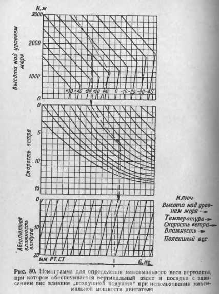 ПОСАДКА ВЕРТОЛЕТА НА ОГРАНИЧЕННУЮ ПЛОЩАДКУПри полетах на вертолете летчик испытывает наибольшие трудности во время выполнения посадки на ограниченные площадки с высокими препятствиями на подходах, среди леса и гор. В этом случае требуется не только отличное пилотирование вертолетом, но и знание его технических возможностей. Зависание при этом приходится производить вне сферы влияния «воздушной подушки», для чего необходима значительно большая мощность двигателя, чем при висении у земли. Если перед зависанием скорость вертикального снижения будет велика, то может не хватить мощности двигателя для прекращения снижения вертолета. Поэтому перед посадкой должны быть оценены параметры, влияющие на возможность ее производства, такие, как полетный вес вертолета, температура наружного воздуха, скорость ветра и высота площадки над уровнем моря. Величина полетного веса, при котором возможно висение, определяется из номограммы, приведенной на рис. 80. Если эта величина над посадочной площадкой к моменту зависания окажется больше величины, найденной по номограмме, то вертолет не зависнет и посадку будет выполнить невозможно. Кроме этого, нужно учитывать и такие действия рулями, которые могут привести к уменьшению мощности двигателя, идущей на вращение несущего винта. На одновинтовых вертолетах при доворотах, выполняемых за счет силы тяги рулевого винта, происходит дополнительный отбор мощности двигателя на создание этой тяги. Если полетный вес будет предельным, то доворот на висении послужит причиной снижения вертолета. При снижении нельзя допускать, чтобы общий шаг несущего винта был больше значения, при котором получается наибольшая тяга, иначе увеличивается вредное сопротивление лопастей, на преодоление которого дополнительно тратится мощность двигателя. Иными словами, винт в данных условиях становится «тяжелым». Так как величина шага несущего винта, при которой получается наибольшая тяга, не фиксируется специальным ограничителем, то ее при работе рычагом «шаг — газ» можно легко пройти. Это еле дует особенно помнить в условиях, требующих использования полной тяги несущего винта. Существовавшее ранее мнение о том, что при висении вертолета над лесом создается «воздушная подушка», хотя и меньшая, чем при висении вертолета у земли, не подтвердилось. Поэтому при всех расчетах полетных весов вертолетов, с которыми возможно висение вертолета над лесом, влияние «воздушной подушки» не должно учитываться. При выполнении посадок на ограниченные площадки перед приземлением следует убедиться в твердости грунта этой площадки. Для этого, если есть возможность, высаживают с режима висения кого-либо из членов экипажа (в крайнем случае кого-нибудь из пассажиров) на посадочную площадку. Получив разрешение с земли о возможности посадки, производят ее. Однако даже в случае обследованного грунта быстро уменьшать обороты двигателя не рекомендуется. Это связано с возможностью продавливания грунта колесами. Если обследовать грунт не представляется возможным, то уменьшение шага несущего винта должно быть не только медленным, но и с остановками. При этом наблюдают, погружаются колеса в грунт или нет. ![]() После приземления вертолета некоторое время, не выключая двигателя и трансмиссии, убеждаются, что твердость гранта достаточна дл