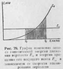 ПОСАДКА ВЕРТОЛЕТА НА РЕЖИМЕ САМОВРАЩЕНИЯ НЕСУЩЕГО ВИНТАПосадка вертолета на режиме самовращения несущего винта может выполняться тремя способами: «по-самолетному», только с использованием запаса кинетической энергии несущего винта и комбинированным способом, являющимся совокупностью двух предыдущих. Чем меньше вертикальная скорость в момент приземления, тем меньше нагрузка на посадочные органы и другие силовые элементы конструкции вертолета. Чем меньше поступательная скорость при посадке, тем меньше пробег вертолета и, следовательно, меньшая посадочная площадка потребуется в случае отказа двигателя вертолета. Однако предпосадочный маневр не должен быть сложным, чтобы не требовать большого напряжения от летчика, ибо в противном случае трудно выполнить правильную безошибочною посадку. По времени предпосадочный маневр должен быть таким, чтобы в случае необходимости имелась возможность исправить небольшие ошибки в пилотировании вертолетом перед посадкой. Эти требования являются основными для предпосадочного маневра при выполнении посадки тем или иным возможным способом. Для уменьшения вертикальной и поступательной скоростей вертолета перед приземлением необходимо создать избыточную аэродинамическую силу, одна составляющая которой должна быть направлена вертикально вверх и должна быть больше веса вертолета, а другая — горизонтально против полета. При планировании и посадке вертолета с работающим двигателем избыточная аэродинамическая сила создается увеличением мощности двигателя с одновременным увеличением общего шага несущего винта. ![]() При планировании с выключенным двигателем перед посадкой возможно только кратковременное увеличение тяги винта либо увеличением угла атаки несущего винта, либо увеличением общего шага его. Наибольшее увеличение тяги несущего винта посредством увеличения угла атаки винта (т. е. увеличения угла тангажа всего вертолета) получается на большой скорости планирования. Создание избыточной тяги несущего винта посредством увеличения общего шага достигается на большой скорости вращения несущего винта. Применение этих способов возможно только тогда, когда достаточно велики силы инерции того или иного вида движения, т. е. имеются достаточные запасы кинетической энергии. Величина кинетической энергии прямо пропорциональна квадрату скорости движения и характеризует способность вертолета создавать избыточною аэродинамическую силу, необходимую для уменьшения вертикальной скорости перед посадкой. На рис. 79 показано изменение запаса кинетической энергии движения вертолета и энергии вращения его несущего винта. На графике запаса кинетической энергии (рис. 79) можно выделить примерно три диапазона скоростей планирования соответственно трем типам посадок. На скоростях планирования более V2 принципиально возможно производить посадку «по-самолетному» без увеличения общего шага несущего винта. В диапазоне скоростей от I/, до V2 запаса кинетической энергии движения вертолета может не хватить для погашения вертикальной скорости, поэтому необходимо перед посадкой увеличить общий шаг несущего винта. На скоростях планирования менее Vlt где запасы кинетической энергии вертолета очень малы, посадка возможна только посредством увеличения общего шага несущего винта, т. е. за с