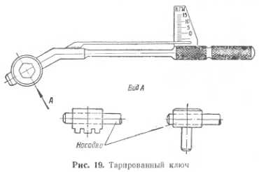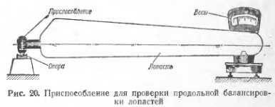 РЕГЛАМЕНТНЫЕ РАБОТЫ НА НЕСУЩЕМ ВИНТЕПо мере наработки несущим винтом определенного числа часов в результате действия различных сил на элементы его конструкции происходит ослабление крепления некоторых деталей, ухудшается качество смазки шарнирных сочленений и т. п. Для предупреждения возможных отказов несущего винта из-за указанных дефектов в процессе эксплуатации предусматривается проведение регламентных работ. Смазка деталей втулки Основным видом регламентных работ по несущему винту является регулярное пополнение и периодическая замена смазки в шарнирных сочленениях его втулки. Подшипники шарниров втулки работают постоянно под действием переменных и значительных по своей величине нагрузок. Для обеспечения смазки трущихся поверхностей этих шарниров (горизонтального, вертикального и осевого) применяются специальные масла. Масло в определенном количестве заливается в полости указанных шарниров через воронку или специальным штоковым шприцем. По мере наработки несущим винтом определенного числа часов масло загрязняется, и его смазывающие качества ухудшаются. Поэтому регламентом технического обслуживания предусматривается периодическая замена масла. Несоблюдение сроков замены масла приводит к преждевременному износу опорных поверхностей подшипников и выходу их из строя. К таким же последствиям приводит и применение сортов масла, не предусмотренных для смазки подшипников. Практика показывает, что игольчатые подшипники наиболее долговечно работают при смазке их специальным гипоидным маслом, а шариковые подшипники — при смазке моторным маслом. Более подробно вопросы смазки различных узлов вертолета излагаются в главе «Смазка агрегатов вертолета». Кроме смазки деталей втулки, на вертолетах производится регулярная проверка затяжки деталей крепления втулки к валу главного редуктора, рычагов поворота лопастей и демпфера вертикального шарнира. Затяжка крепления втулки к валу обычно проверяется один раз после первых 5 часов налета вертолета со вновь установленной втулкой несущего винта, так как при дальнейшей наработке не наблюдается ее ослабления. Проверка затяжки других перечисленных выше деталей должна проводиться систематически на протяжении всей работы несущего винта до полной выработки ресурса. Для Ми-4, например, эти работы производятся по регламенту через каждые 50±5 час наработки несущего винта в полете. ![]() Затяжка гайки втулки и ряда других деталей, как и проверка затяжки при выполнении регламентных работ, производится специальными тарированными ключами (рис. 19). Во избежание повреждения этих ключей при хранении и нарушения их регулировки они должны храниться наравне с измерительным инструментом в отдельном ящике и -применяться только по прямому назначению. Поскольку тарированная (строго определенная) сила затяжки применяется для многих гаек и болтов на вертолете, в целях сокращения числа тарированных ключей употребляются различные насадки для тарированных ворот- к©в. На вертолетах Ми-4, например, применяются три тарированных воротка со шкалами до 15, 40 и 230 кгм для затяжки различных гаек эти воротки приспосабливаются при помощи разнообразных насадок. Проверка статической балансировки лопастей Как уже указывалось, в процессе эксплуатации вертолетов под действием различных атмосф