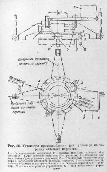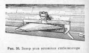 РЕГУЛИРОВАНИЕ СИСТЕМЫ УПРАВЛЕНИЯ ВЕРТОЛЕТОМРегулирование системы управления вертолетом производится в целях обеспечения его нормальной управляемости в различных условиях полета и включает в себя регулирование управления несущим винтом, стабилизатором, рулевым винтом и объединенным управлением системы «шаг — газ». Регулирование объединенным управлением системы «шаг — газ» описано в главе «Несущие винты», а регулирование рулевым винтом в главе «Рулевые винты». Регулирование управления несущим винтом Перед тем как непосредственно приступить к проверке или регулировке управления несущим винтом, вертолет нужно установить на домкраты. При помощи домкратов и угломера, устанавливаемого на втулку несущего винта или на вал гласного редуктора, ось винта, или, другими словами, вал главного редуктора, на котором крепится втулка несущего винта, устанавливается в вертикальное положение. Угломер (рис. 53) имеет два уровня, расположенные в горизонтальной плоскости под углом 90°, и подвижный диск с делениями, по которым ведется отсчет градусов и минут. Чтобы установить ось несущего винта вертикально, вначале домкратами добиваются такого ее положения, при котором пузырек одного из двух уровней угломера расположится посередине между метками. После этого добиваются, чтобы пузырек другого уровня угломера также установился между метками. В этом случае ось винта займет вертикальное положение. При выполнении указанных работ следует учитывать, как изменится положение оси при поднятии или опускании вертолета определенным домкратом. Часто бывает так, что, добиваясь нужного расположения оси в одной из плоскостей (продольной или поперечной), нарушают регулировку в другой плоскости, вследствие чего затрачивается много времени на установку оси винта в вертикальное положение. Для вертолетов, которые вывешиваются при помощи четырех домкратов, можно рекомендовать при установке оси несущего винта в вертикальное положение пользоваться одновременно двумя домкратами: либо передними, либо задними, либо боковыми, расположенными с одной стороны вертолета. При таком действии домкратами положение оси винта изменяется в одной плоскости без нарушения регулировки в другой. ![]() После установки оси несущего винта в вертикальное положение приступают к выполнению регулировочных работ по системе управления. Регулирование управления общим шагом Смысл регулирования управления общим шагом несущего винта заключается в обеспечении требуемого хода ползуна автомата перекоса в зависимости от положения и движения рычага «шаг—газ». Рычаг «шаг — газ» и ползун автомата перекоса при помощи регулируемой тяги устанавливаются в крайнее нижнее положение, причем между ползуном и нижним упором должен быть зазор 1—2 мм. Затем рычаг «шаг — газ» поднимается в крайнее верхнее положение, при этом ползун перемешается вверх на определенное расстояние, которое замеряется. Это расстояние должно быть в пределах, установленных инструкцией по эксплуатации для данного типа вертолета. Убедившись в правильной регулировке управления общим шагом, проверяют по перемещениям ползуна автомата перекоса от нижнего крайнего положения до верхнего крайнего положения показания указателя общего шага. Указатель показывает в условных величинах режим работы несущего винта в соот
