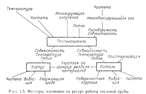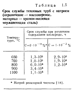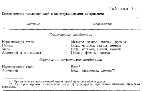 КОРРОЗИОННЫЕ ОГРАНИЧЕНИЯ ПРИ ВЫБОРЕ ТЕПЛОНОСИТЕЛЯ И КОНСТРУКЦИОННЫХ МАТЕРИАЛОВ ТЕПЛОВОЙ ТРУБЫВыбор перспективных пар твердый металл — жидкий металл. Все легкоплавкие или сравнительно легкоплавкие металлы в отношении коррозионной агрессивности в специфических условиях тепловых труб могут быть разделены на четыре группы (с учетом теплофизических и технологических характеристик). Первую группу составляют щелочные металлы: литий, натрий, калий. Они достаточно удобны в эксплуатации, имеют хорошие физические, физико-химические и теплофизические характеристики. Их коррозионная агрессивность сравнительно невелика. В применении этой группы металлов в однофазных системах накоплен большой и разносторонний опыт. Этот опыт полезен и при установлении критериев применимости жидких металлов в качестве теплоносителя тепловых труб. Ко второй группе можно отнести серебро и индий. Эти металлы в меньшей степени освоены технологически, но тем не менее они перспективны. Третью группу составят вещества, возможно, перспективные для применения в качестве теплоносителя тепловых труб, но теоретически и экспериментально исследованные совершенно недостаточно. При удачном подборе системы с конструкционным материалом и хороших технологических разработках некоторые из веществ, отнесенные в настоящее время к третьей группе, по-видимому, удастся применить в тепловых трубах. К этой группе относятся кальций, висмут, свинец, таллий, барий. Наконец, четвертую группу составят вещества с относительно невысокой температурой плавления, но для тепловых труб, по-видимому, бесперспективные. Некоторые вещества исключаются из рассмотрения, как обладающие неудачным комплексом теплофизических свойств. Это магний, сурьма, теллур, олово, кадмий. Алюминий и другие металлы исключаются из-за их склонности к образованию интерметаллических соединений с большинством конструкционных металлов; галлий и цинк исключаются, как чрезвычайно. активные растворители для многих конструкционных металлов. Коррозионные критерии пригодности теплоносителей тепловых труб. В системах твердый металл — жидкий металл часто наблюдается адсорбционное понижение прочности твердого металла под действием жидкого. Снижение поверхностной энергии твердого металла при одновременном воздействии растягивающих напряжений может привести к преждевременному его разрушению при небольших нагрузках (эффект Ребиндера). Тепловые трубы вводят в обращение много новых металлов, помимо теплоносителей, в какой-то мере уже освоенных техникой: натрий, калий, литий, ртуть. Но элемент новизны есть и в работе с перечисленными жидкими металлами, так как рабочие температуры тепловых труб значительно выше ранее освоенного интервала. Соответственно требуется применение новых, более жаропрочных конструкционных материалов, поведение которых в системах с жидкометаллическими теплоносителями еще не изучено. Высокотемпературные тепловые трубы иногда работают при внутреннем давлении пара теплоносителя, достигающем нескольких тысяч паскалей. Такое давление с учетом высоких температур создает в корпусе тепловой трубы напряжения, зачастую близкие к пределу длительной прочности (в зависимости от выбираемого материала, температуры и ресурса). В процессе пуска и остановки тепловой трубы система п