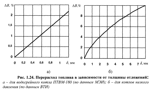 ОЦЕНКА СОВРЕМЕННОГО СОСТОЯНИЯ ИСТОЧНИКОВ ПИКОВОЙ ТЕПЛОВОЙ МОЩНОСТИ. НОВЫЙ ПОДХОД К ЭФФЕКТИВНОСТИ ОБЕСПЕЧЕНИЯ ПИКОВОЙ НАГРУЗКИ СИСТЕМ ТЕПЛОСНАБЖЕНИЯТрадиционно к пиковым источникам тепловой мощности предъявляются значительно меньшие требования по экономичности, чем к основным источникам теплоты. Поскольку на ТЭЦ большая часть годового отпуска теплоты в водяные системы теплоснабжения обеспечивается за счет высокоэкономичных отборов пара на сетевые подогреватели теплофикационных турбин, то считается приемлемым в качестве пиковых источников использовать гораздо менее экономичные в эксплуатации, но относительно простые и дешевые по капитальным затратам водогрейные котлы. Предполагается, что при обычно рекомендуемом коэффициенте теплофикации остэц - 0,5-Ю,7 время работы водогрейных котлов не должно ощутимо превышать 1000 часов в год, а отпуск теплоты от них - 10% от общего отпуска теплоты, поэтому ущерб от пониженной экономичности этих котлов для ТЭЦ невелик. Рассмотренный выше подход к выбору пиковых источников теплоты сформировался несколько десятилетий назад, при весьма низкой стоимости топлива, поставляемого для отечественной теплоэнергетики. В настоящее время, при резко возросшей стоимости топлива, этот подход нуждается в существенной корректировке. Корректировка должна заключаться в значительном повышении требований к тепловой экономичности прежде всего пиковых водогрейных котлов, как самых распространенных источников пиковой тепловой мощности. В настоящее время на тепловых электростанциях и в крупных отопительных котельных России эксплуатируется более 600 стальных водогрейных котлов серии ПТВМ и более 200 котлов серий KB-ГМ, КВ-ТК и KB-ТС производительностью 58,2209,4 МВт, используемых в качестве основных и пиковых источников теплоты. Анализ долгосрочного опыта эксплуатации пиковых водогрейных котлов показывает, что имеется целый ряд недостатков работы этих агрегатов: низкий коэффициент использования топлива по сравнению с энергетическими паровыми котлами за счет больших потерь теплоты с уходящими газами; повышенные требования к качеству сетевой воды, что затрудняет использование более простых и дешевых методов водоподготовки, приводит к значительному расходу дорогостоящих химических реагентов и необходимости сооружения установок для обработки и обезвреживания сбросных вод после регенерации фильтров, а при ухудшении водно-химического режима приводит к интенсивному накипеобразованию и, как следствие, к пережогу труб; значительное напряжение топочной камеры при сжигании мазута, что интенсифицирует процесс накипеобразования, а низкая температура стенок экранных поверхностей при сжигании твердого топлива затрудняет организацию топочного режима, особенно при использовании малореакционных углей; недостаточный (80-100%) диапазон регулирования котлов на твердом топливе без подсветки мазутом (газом), что приводит в течение значительной части отопительного сезона к расходу дорогого жидкого и газообразного топлива, а при сжигании сернистого мазута - к коррозии поверхностей нагрева из-за их низкой температуры; рост температурных разверок, гидравлического сопротивления котла, снижение давления воды на выходе из него по мере образования внутренних отложений, что может привести к пристенному кипени