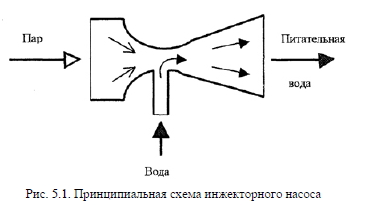 Питательные установкиДля подачи воды в котел (обычно вода подается в экономайзер) используется питательная установка, называемая часто питательным насосом. Эта установка должна обладать повышенной надежностью в эксплуатации. Даже кратковременное прекращение подачи воды в котел может привести к перегреву и пережогу труб или серьезным авариям, т.к. там, где должна циркулировать вода и отводить теплоту от дымовых газов, воды может не оказаться. В качестве основного устройства питания водой теплогенерирующих установок малой и средней мощности используют центробежные насосы с электроприводом. В производственных и производственно-отопительных котельных, где вырабатывается пар, могут применяться поршневые насосы с паровым приводом, а в небольших отопительных котельных иногда для питания котла водой используют инжекторные насосы. Центробежные насосы с электроприводом в теплогенерирующих установках получили широкое преимущественное применение из-за высокой экономичности и надежности, удобства регулировки производительности и простоты обслуживания. Вместе с тем, в качестве недостатков таких питательных устройств выступают: необходимость держать насос под заливом при запуске; резкое снижение производительности насоса при механическом износе рабочего колеса; низкий КПД насосной установки при ее малой производительности по отношению к номинальной. Поршневые насосы с паровым приводом нашли применение в качестве питательных установок только в теплогенерирующих установках с паровыми котлами, т.к. для их привода требуется пар. Очень часто паровые поршневые питательные насосы используются в качестве резервных. Паровые питательные насосы имеют ряд достоинств: независимость привода от наличия в теплогенерирующей установке электрической энергии; использование пара после насоса в цикле теплогенерирующей установки. Вместе с тем, есть ряд существенных недостатков: низкая экономичность; большой расход пара на перекачку воды; неравномерность подачи воды во времени; значительная чувствительность насоса к механическим примесям в воде и др. Питание водой небольших отопительных котлов может осуществляться с помощью инжекторного (пароструйного) насоса, схематическое изображение которого показано на рис. 5.1. Пар, проходящий через сопло (инжектор), вызывает в минимальном сечении, где скорость потока пара максимальна, разрежение, что приводит к подсосу воды в поток пара. В результате этого на выходе из инжектора давление воды оказывается выше, чем оно было до инжектора. Сам пар конденсируется, переходит в воду и отдает ей свою тепловую энергию, т.е. в инжекторном насосе параллельно с повышением давления воды идет и ее подогрев за счет теплоты пара. ![]() Для надежной работы инжекторов температура питательной воды на входе в насос должна быть не выше 40 °С и высота подачи не более 2 м. Расход пара в инжекторном насосе обычно составляет 1...9% от количества перекачиваемой воды. Основные достоинства инжекторных насосов: простота устройства и обслуживания; компактность; отсутствие движущихся частей. Недостатками являются: значительный расход пара на перекачку воды; отсутствие возможности регулировать производительность насоса при создаваемом им постоянном напоре воды. |