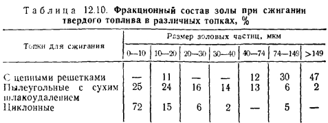 Общие положенияДля мировой энергетики характерно в настоящее время возрождение интереса к углям в качестве основного топлива котельных и тепловых электростанций. Это ставит новые, более серьезные задачи в области улавливания золы, так как зольность топлив из года в год возрастает. У нас в стране это изменение составляет 0,025—0,07 % зольности в год на 1000 КДж калорийности. Исследования показывают, что золовые выбросы наблюдаются не только при сжигании твердых топлив (табл. 12.9). При выбросе из дымовых труб частицы золы рассеиваются в атмосфере и выпадают с течением времени на поверхность земли. Однако только частицы с размером более 1 мкм подчиняются закону Стокса. Частицам размером менее 0,1 мкм свойственно броуновское движение. Установлено, что максимальные концентрации твердых частиц наблюдаются на расстоянии (8—18) Н (рис. 12.5). Эффективность работы газоочистительных устройств в большей степени зависит от физико-химических свойств улавливаемой золы и поступающих в золоуловитель газов. Способы очистки газов от твердых частиц, существующие в различных отраслях промышленности, приведены на рис. 12.6. Золоуловители, применяемые в энергетике, разделяют на следующие основные группы: механические сухие инерционные золоуловители, в которых частицы золы отделяются от газа под действием центробежных или инерционных сил тяжести;(2рмокрые золоуловители, в которых частицы золы удаляются из газа промывкой или орошением его водой с последующим осаждением частиц золы на смачиваемых поверхностях/ ![]() ![]() Степень очистки газов определяют по формуле ![]() Когда произведение зольности Аг (в %) на максимальный секундный расход топлива (кг/с) равно величине АГВ 1400, то котельные на твердом топливе обязательно оборудуют золоулавливающими установками. ![]() ![]() Дисперсный состав золы зависит не только от вида и качества топлива, но и от способа его сжигания. В табл, 12.10 приведен фракционный состав золы при сжигании твердого топлива в различных топочных устройствах Количество золы (концентрация в потоке, г/м3) в продуктах сгорания в значительной мере зависит от свойств топлива. Например, Экибастузский СС имеет макс — 40% (QJ =16 800 КДж/кг), а Кузнецкий ДР БР (51) — Лашкс ==15 % (Q. =22 800 КДж/кг). Естественно, что при одинаковых условиях сжигания содержание твердых частиц золы в продуктах сгорания в первом случае будет примерно в 4 раза выше, так как эти топлива имеют значительно отличающиеся величины и различную зольность. При слоевом сжигании топлива в топке осаждается 60—75 % золы, т. е. уносится 25—40 %, из которых примерно половина оседает в газоходах котла, а вместе с продуктами сгорания в дымовую трубу уносится всего 10—15 %. Рассмотрим принцип действия основных типов золоуловителей, используемых в промышленной энергетике. |