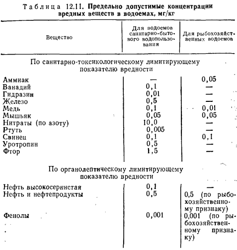 Общие положенияРациональное использование и охрана водных ресурсов являются важной частью общей проблемы охраны окружающей среды. В настоящее время на нужды теплоэнергетики расходуется около 250 км3/год воды, причем безвозвратные потери составляют около 15 км3/год. Предполагается, что впоследствии потребление воды теплоэнергетикой возрастет, если не будет совершенствоваться технология, до 1000 км3/год, а для разведения сбросов при существующих технологиях до приемлемых концентраций вредных примесей в воде ее потребуется 7000 км3/год. Для сравнения можно сказать, что годовой сток р. Невы в Ленинграде составляет 80 км3/год, а р. Волги в районе г. Горького—250 км3/год. Поэтому для улучшения использования водных ресурсов ведут работы в следующих направлениях: совершенствуют применяемые технологические процессы и разрабатывают новые с целью резкого уменьшения количества сбрасываемых примесей; совершенствуют технологию очистки сточных вод, включая их утилизацию и извлечение из них ценных веществ; отказываются, где это возможно, от использования в технологических процессах воды; применяют оборотное и повторное использование воды. Водоемы и водотоки представляют собой сложные экологические системы существования биоценоза — сообщества живых организмов (животных и растений). При сбросе в водоемы стоков, содержащих вредные примеси, происходит отклонение экосистемы от равновесного состояния. Большие количества сбрасываемых вредных веществ могут вызывать отравление (а иногда и гибель) определенного вида гидробионтов (живых организмов). Обычно отклонения от равновесия интенсифицируют процессы, приводящие водоем в оптимальное для него состояние, которые называются процессами самоочищения водоема. Особенно большое значение в процессе самоочищения имеет кислородный режим водоема. Расход кислорода на минерализацию органических веществ определяется через его биохимическое потребление (ВПК), которое характеризуется количеством кислорода, использованного в биохимических (при помощи бактерий) процессах окисления органических веществ за определенное время инкубации пробы (мг кислорода/ /сут). Обычно на практике пользуются пятисуточной (БПК5) или полной (БПКполн) биохимической потребностью кислорода. При больших сбросах вредных веществ в водоеме наступает большой дефицит кислорода, при котором значительно нарушается биоценоз, происходит накопление и загнивание органических веществ (анаэробные процессы), что вызывает серьезное ухудшение качества воды. Воздействие даже одной ядовитой (токсичной) примеси на качество воды и замедление процессов самоочищения водоемов могут влиять на жизнедеятельность гидробионтов. При установлении предельно допустимых концентраций (ПДК) вредных примесей в водоемах ориентируются на минимальную (подпороговую, ППК) концентрацию вещества по одному из следующих показателей: ППКор.л — определяемая по изменению органолептических характеристик (цвету, привкусу, запаху); ППКс.р.в — определяемая по влиянию на санитарный режим водоема (ВПК, растворенный Ог, pH — воды); ППКТ — определяемая по санитарно-токсикологическому влиянию этого вещества. Значение нормативной ПДК каждого вещества в водоеме устанавливают по наименьшему значению одной из подпороговых концентраций. Предельно допустимой концент