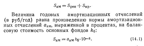 ОСНОВНЫЕ ОПРЕДЕЛЕНИЯДля проведения технико-экономического обоснования с целью выбора оптимального проектного решения и для оценки качества проекта, а также для оценки экономической эффективности, технического уровня и качества эксплуатации теплогенерирующих установок служит система технологических (энергетических), экономических и режимных показателей. Каждая теплогенерирующая установка для производства теплоты или пара снабжена кадрами квалифицированных работников и материальными и денежными средствами (фондами). Фонды разделяют на фонды производства и фонды обращения. Фонды производства обеспечивают бесперебойность рабочего процесса, фонды обращения обслуживают процесс реализации продукции. Фонды производства обычно разделяют на основные и оборотные. В зависимости от характера участия основных фондов в процессе производства их подразделяют на основные производственные и основные непроизводственные фонды. Основные производственные фонды включают: теплогенерирующие установки, сооружения, здания производственного назначения, топливоподачу, химводоочистку и т. п.; непроизводственные основные фонды: жилые дома, поликлиники, детские и культурные учреждения и сооружения, необходимые для обслуживания бытовых и культурных потребностей работников предприятия. К оборотным фондам относятся предметы труда (т. е. все то, из чего изготовляется продукция) — топливо, вода, химические реактивы для системы ХВО, мелкий малоценный инструмент, вспомогательные материалы. Обычно к оборотным фондам также относятся все средства труда, функционирующие меньше года, независимо от их стоимости, а также те, которые оцениваются менее 50 руб. независимо от срока службы. Оценку основных фондов проводят в натуральной и денежной формах. Денежную оценку проводят в двух формах: 1) по первоначальной стоимости — фактические затраты на основные фонды с учетом их доставки и монтажа на момент ввода в работу; 2) по восстановительной стоимости — затраты, которые должны быть произведены в настоящее время для создания существующих фондов. Восстановительная стоимость основных фондов, находящихся на балансе предприятия, меняется с течением времени (даже в пределах одного года) в результате выбытия части фондов и ввода новых. Со временем происходит износ основных фондов: физический или моральный. Физический износ происходит в процессе производства и под влиянием сил природы (истирание отдельных частей, коррозия, эрозия и т. д.). Моральный износ — это снижение стоимости фондов вследствие удешевления в настоящее время их воспроизводства (1-я форма) или появления более совершенных машин (2-я форма). Затраты на возмещение изношенных основных фондов входят в себестоимость продукции в виде амортизационных отчислений. Амортизационные отчисления представляют собой денежное выражение размера постепенного износа основных фондов, соответствующего переносимой части их потребительской стоимости на изготовляемую продукцию. Изношенные основные фонды возмещаются строительством новых фондов, а также капитальным ремонтом и модернизацией действующих основных фондов. В соответствии с этим амортизационные отчисления 5ам разделяют на две части: отчисления на полное восстановление, или реновацию и отчисления на капитальный ремонт и модернизацию SKP: ![]()