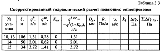Корректировка гидравлического расчета подающих теплопроводовОпределив циркуляционные расходы воды qclr на отдельных участках сети горячего водоснабжения, уточняют расчетные значения расходов горячей воды на участках внутриквартальных сетей и подающих трубопроводов внутридомовой системы до первого водоразборного стояка (по ходу движения воды). Затем, исходя из уточняют удельные потери давления и скорость движения воды на участках и (и не должна превышать 3 м/с). Если скорость движения воды превышает допустимое значение, то увеличивают диаметр участка. Поскольку расчетный расход горячей воды для участков внутридомовой сети, начиная с первого водоразборного стояка (по ходу движения воды) до самого удаленного водоразборного прибора, определяется без учета циркуляционного расхода, то гидравлический расчет этих участков корректировке не подлежит. Окончательный гидравлический расчет подающих теплопроводов системы горячего водоснабжения сводят в табл. 3.3. ![]() ПРИМЕР 3.7. Произвести корректировку гидравлического расчета подающих теплопроводов системы горячего водоснабжения, выполненного в примере 3 4, с учетом уточненных расходов воды по формуле (3 9) Решение Определяем значения коэффициента КГ1Г для участков 10, 13-15 в зависимости от соотношения расходов на них согласно [1, прил 5] ![]() Следовательно, в соответствии с формулой (3 9), расчетные расходы воды на участках внутриквартальной сети не изменяются, корректировка гидравлического расчета не требуется |