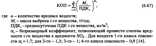 Нормирование предельно допустимых выбросовДля предотвращения загрязнения атмосферного воздуха сверх установленных ПДК введены нормативы на величины выброса вредных веществ [2]. Предельно допустимый выброс (ПДВ) является научно-техническим нормативом, устанавливаемым для каждого конкретного источника загрязнения атмосферы при условии, что выбросы от него и всей совокупности источников с учетом их рассеивания и превращения в атмосфере, а также перспектив развития предприятия не создадут приземных концентраций, превышающих нормативы качества воздуха. Сокращение количества выбросов достигается совершенствованием технологического процесса производства и применением газоочистных устройств. Нели по причинам объективного характера на предприятии не могут быть достигнуты нормы ПДВ, вводится поэтапное снижение выброса вредных веществ до значений, обеспечивающих соблюдение ПДК. При этом количество временно согласованных выбросов (ВСВ) должно устанавливаться с учетом величин выбросов, достигнутых на предприятиях с передовой технологией производства. Величины ПДВ и ВСВ устанавливаются в тоннах в год. Контрольные их значения исчисляются в граммах в секунду и не должны быть превышены в любой двадцатиминутный интервал времени. ПДВ и ВСВ определяются для каждого источника отдельно. В результате суммирования для различных источников устанавливаются допустимые значения для промышленных объектов и комплексов. Величины ПДВ (ВСВ) разрабатываются на предприятиях, а затем рассматриваются и согласовываются с органами, осуществляющими контроль за качеством воздушной среды, и утверждаются в установленном порядке. Пересмотр норм ПДВ и ВСВ осуществляется не реже одного раза в пять лет. Расчеты по установлению допустимых выбросов вредных веществ промышленными предприятиями производятся в соответствии с ГОСТ 17.2.3-02-78. При расчетах ПДВ валовые массы вредных веществ, поступающих в атмосферу, определяют как разность между их массой, выделившейся в ходе технологического процесса, с учетом фактического времени работы оборудования, и их массой, уловленной очистными установками, с учетом эффективности последних [3]. Сведения по валовому количеству удаляемых с выбросами вредных веществ должны быть обоснованы при составлении характеристики объекта проектирования как источника загрязнения атмосферы. При этом характеристику технологического процесса необходимо прорабатывать в объеме, достаточном для определения количества выбрасываемых вредных веществ балансовым или другими теоретическими методами. Необходимо также использовать различные методики, в том числе и отраслевые, для определения валовых выбросов вредных веществ в атмосферу технологическими производствами. Подобный новейший нормативный материал целесообразно изучать по месту прохождения преддипломной практики. Для конкретного технологического оборудования количество газовых выбросов и содержащихся в них вредностей рекомендуется устанавливать по паспортным данным, которые затем уточняются по результатам натурных исследований аналогичных действующих производств. Для систем общеобменной вентиляции расчеты ведут исходя из количества вредных выделений в помещения производственных цехов. При этом допускается принимать концентрацию их соответствующе
