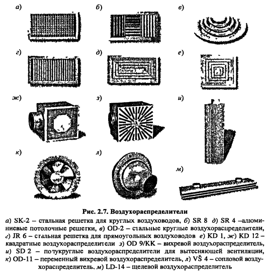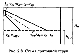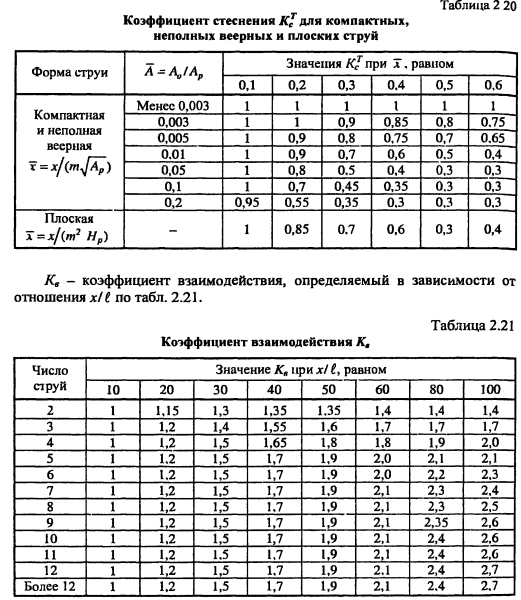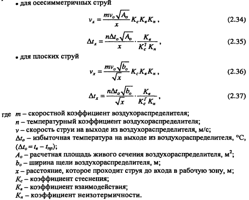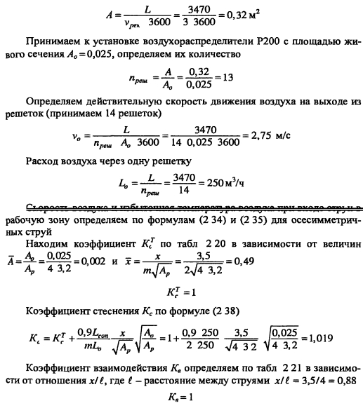 Расчет воздухораспределения в помещенииРасчет воздухораспределения является одним из важнейших этапов при расчете и проектировании систем вентиляции, т к является критерием, определяющим качество выполненных проектных работ Назначение системы вентиляции в том, чтобы человек, находясь в помещении чувствовал себя комфортно, технологический процесс протекал при требуемых параметрах воздуха без нарушения качества выпускаемой продукции. Для этого необходимо, чтобы распределение воздуха в помещении было равномерным, не было застойных зон, а также параметры воздуха в рабочей зоне помещения соответствовали нормативным значениям Санитарно-гигиеническая и экономическая эффективность системы вентиляции во многом зависит от распределения воздуха в помещении При грамотно выбранной схеме воздухообмена и конструкции воздухораспределителей можно подать воздух в помещение с минимальными затратами (при низкой температуре и большой скорости, что уменьшает расход воздуха, затраты на оборудование, тепловую и электрическую энергию), по при этом обеспечить требуемые комфортные условия в помещении Воздухораспределитель - устройство, через которое воздух из приточного воздуховода поступает в помещение В настоящее время выпускаются различные воздухораспределители, удовлетворяющие любым техническим и эстетическим требованиям решетки, плафоны (анемостаты), перфорированные панели и воздуховоды, насадки с форсунками (вихревые) и др Существуют воздухораспределители для создания вытесняющей вентиляции в помещении Конструкции современных воздухораспределителей, благодаря высокой эжекционной способности, позволяют распределять воздух при больших значениях «рабочей разности температур» (te - tnp) и большой скорости и при этом обеспечивать требуемые параметры воздуха в рабочей зоне помещения Воздухораспределители изготавливаются из стали (с различными покрытиями), алюминия, полимерных материалов Некоторые виды воздухораспределителей представлены на рис 2 7 ![]() При выборе конструкции воздухораспределителей руководствуются расходом приточного воздуха; параметрами воздуха, которые необходимо поддерживать в рабочей зоне помещения; количеством воздухораспределителей. При принудительном истечении из воздухораспределителя образуется поток воздуха с расширенными границами, который называется приточной струей. В зависимости от режима течения струи бывают ламинарными и турбулентными. В вентиляционной практике в основном - турбулентные струи. По степени стеснения струи бывают свободными и стесненными. В зависимости от температуры приточного воздуха струи бывают изотермические (температура на выходе из воздухораспределителя равна температуре окружающего воздуха) и неизотермические (температура на выходе из воздухораспределителя отличается от температуры окружающего воздуха). В зависимости от геометрической формы отверстия воздухораспределителя струи подразделяются на осесимметричные (компактные, истекающие из круглых, квадратных и прямоугольных отверстий; веерные, неполные веерные, конические, закрученные) и плоские, истекающие из щелевых отверстий. ![]() ![]() ![]() ![]() Методика определения коэффициентов неизотермичности, стеснения, взаимодействия изложена в справочнике [19] и пособии к СНиП [17]. Коэффициент неизотерм