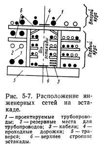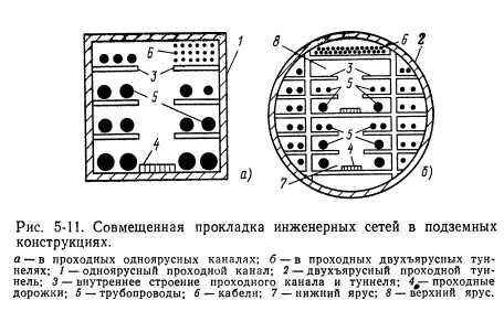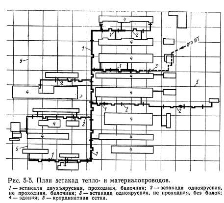 СОВМЕЩЕННАЯ ПРОКЛАДКА ИНЖЕНЕРНЫХ СЕТЕЙВ результате быстрого развития науки и техники и появления новой технологии производства в настоящее время происходит быстрое развитие инженерных сетей, обеспечивающих как производственные процессы, так и потребности жилищно-коммунального сектора городов. Для нужд промышленности стали сооружать; 1) сети сжатого воздуха разных давлении для нужд производства и работы контрольно-измерительных приборов и автоматики; 2) кислородопроводы для сварки и выплавки металлов; 3) кислотопроводы серной, соляной, азотной, уксусной и других кислот; 4) трубопроводы щелочных растворов; 5) трубопроводы ядохимикатов и отравляющих веществ (метанола, фосгена, дифосгена, хлора и т. п.); 6) сети хладоагентов — рассолов разных температуу фреона и т. п.; 7) трубопроводы горючих и взрывоопасных веществ мазута, разных спиртов, эфира и т. п.; 8) сети инертных и активных газов: азота — для опа рождения различных трубопроводов и систем, наполненных активными веществами, углекислого газа — для выполнения разных технологических процессов и т. д. Кроме упомянутых инженерных -сетей существует еще целый ряд других. Считается, что общее количество разновидностей инженерных сетей в настоящее время достигает 200 единиц. Развитию новых видов инженерных сетей способствовало освоение производства трубопроводов из нержавеющих металлов, полимеров, стекла и резины, а также разнотипных насосов, создающих необходимый напор и режим в трубопроводных системах. Увеличение количества инженерных сетей и ограниченная ширина полосы между стенами зданий промышленных предприятий или ширина городских улиц приводит к необходимости совмещения прокладки сетей. Так, например, на одном из предприятий Латвийской ССР потребовалась прокладка в одном направлении 48 трубопроводов разного характера и около 10 электрических кабелей. Ширина полосы, необходимая для подземной несовмещенной прокладки инженерных сетей завода, составила бы от 80 до 100 м при фактическом расстоянии между отдельными корпусами завода от 20 до 40 м. При осуществлении совмещенной прокладки инженерных сетей по надземным двухъярусным проходным эстакадам удалось сократить ширину полосы прокладки надземных сетей до 4,2 м на прямых участках и до 10,2 м в местах устройства П-образных компенсаторов. Таким образом, применение совмещенной прокладки инженерных сетей в условиях этого предприятия явилось единственным возможным решением. Опыт строительства и эксплуатации совмещенных инженерных сетей за последние годы показывает, что этим способом помимо экономии площади застройки территорий достигается: 1) значительное сокращение капитальных вложений в большинстве случаев строительства; 2) экономия расходования строительных материалов; 3) резкое улучшение и упрощение эксплуатации инженерных сетей; 4) повышение надежности проложенных, сетей; 5) увеличение срока службы сетей (предположительно). Приведенные соображения говорят о том, что совмещенная прокладка инженерных сетей заслуживает самого серьезного внимания при строительстве как отдельных предприятий, так и промышленных узлов и городов в целом. Однако совмещенная прокладка сетей на практике осуществляется не часто. Это объясняется некоторыми недостатками в планировании проектирования и капитального строительства. Для прокл