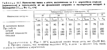 Гигиенические основы вентиляцииСовременные условия жизни человека требуют эффективных искусственных средств оздоровления воздушной среды. Этой цели служит техническая вентиляция. К факторам, вредное действие которых устраняется с помощью вентиляции, относятся: избыточное тепло {конвекционное, вызывающее повышение температуры воздуха) и лучистое; избыточные водяные нары — влага; газы и пары химических веществ общетоксического или раздражающего действия; токсическая и не токсическая пыль; радиоактивные вещества. Рассмотрим кратко источники образования факторов вредности. ![]() Под «явным» тепловыделением понимается только та часть тепла, выделяемого организмом человека, которая воздействует на повышение температуры воздуха помещения (теплообмен конвекцией и излучением), в отличие от «скрытого» тепла, идущего на испарение влаги, так как это тепло хотя и увеличивает теплосодержание воздуха, по почти не оказывает влияния на его температуру. Выделения «скрытого» тепла определяют по формуле Qcv,~OJOn> В г. Сумма «явного» и «скрытого» тепла характеризует полное тепло, выделяемое человеком в окружающую среду. В помещениях, где бывает много люден (зрелищные предприятия, магазины, столовые и др.), тепловыделения создают неблагоприятные условия, вредно отражающиеся на самочувствии, здоровье и работоспособности людей здании общественного назначения, если в нем пребывает большое число людей, я также в цехах и отделах многих промышленных предприятий. В ЦНХИХ и отделах промышленных предприятии избыточное тепло возникает при значительных тепловыделениях машинами, станками, производственной аппаратурой, нагревательными печами, трубопроводами, нагретыми изделиями, остывающими d помещении, людьми, от солнечной радиации и от других источников тепла. При отсутствии вентиляции перечисленные, и другие тепловыделения значительно повышают температуру воздуха н затрудняю г процесс терморегуляции в организме человека и, кроме того, могут отрицательно влиять на технологический процесс производства. ![]() При избыточной влаге в воздухе помете и температуре ниже точки росы пор а куется туман из водяных пиров, и они конденсируются на ограждающих конструкциях здания, что их преждевременно разрушает. Газы и пары. Человек в состоянии покоя в течение 1 ч вдыхает и выдыхает в среднем 500 л воздуха. При дыхании состав воздуха изменяется {табл. 111.2). Содержанке углекислоты в воздухе, если оно обусловливается пребыванием людей в помещении, может служить показателем загрязнения воздуха в результате жизнедеятельности организма человека, В цехах и отделах промышленных предприятий воздух загрязняется главным образом газами и парами, образующимися при протекании технологических процессов. Многие газы и пары, выделяющиеся в воздух производственного помещения, опасны для здоровья человека. |
