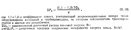 Определение необходимой поверхности нагрева котловПоверхность нагрева котлов определяют исходя из максимальных тепловых нагрузок на отопление, вентиляцию, горячее водоснабжение и технологические нужды (если они имеются). Суммарную поверхность нагрева котлов FK, м2, определяют по формуле ![]() Типы котлов по виду теплоносителя и параметрам и их число определяются назначением котлов, необходимым для потребителей суммарным количеством тепла и местными условиями. При установке котлов в габаритах отапливаемого здания число их должно быть не менее двух и не более четырех, что вполне обеспечит возможность регулирования тепловой мощности котельной установки при колебаниях наружном температуры. Резервные котлы не устанавливают. Для лучшего использования площади котельной следует устанавливать однотипные котлы. |