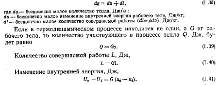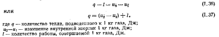 Первый закон термодинамикиПервый закон термодинамики является частным случаем всеобщего закона сохранения и превращения энергии. Этот закон устанавливает основные положения взаимопревращения тепла и механической работы, а также эквивалентность этих превращений. Если, например, а некотором термодинамическом процессе тепло полностью превращается в механическую работу L, то, согласно этому закону, ![]() В системе единиц МКГСС А = 1/427, ккал/(кгсм и 1~—427 кге-м/ккал В единицах СИ теп,юга и работа измеряются в джоулях (Дж), эквиваленты энергии становятся равными единице и Q—L. В энергетике в качестве единицы работы или энергии широко применяется 1 киловатт-час (сокращенно 1 кВт-ч); 1 кВт-ч=3600 кДж. Первый закон термодинамики обычно формулируют следующим образом: подводимое к рабочему телу тепло расходуется на изменение внутренней энергии и совершение работы. При исследовании термодинамических процессов первый закон термодинамики выражают в математической форме. Допустим, что в цилиндре с подвижным поршнем находится 1 кг рабочего тела (газа). Если к этому рабочему телу подвести q (Дж) тепла, то состояние его изменится (увеличатся температура и объем), поршень перейдет в другое положение и рабочее тело при этом совершит I (Дж) работы. Разница между количеством тепла, подведенного к рабочему телу, и совершенной им работой выражает изменение внутренней энергии тела. Таким образом, можно написать ![]() Уравнение (1,37) представляет собой математическое выражение первого закона термодинамики для конечного изменения состояния рабочего тела (газа). Оно показывает, что подводимое к рабочему телу тепло расходуется на изменение внутренней энергии и на совершение работы. Для бесконечно малого изменения состояния рабочего тела (газа) уравнение первого закона термодинамики имеет вид ![]() В зависимости от характера процесса и его направления каждый из членов, входящих в уравнение (I.3S), может быть положительным и отрицательным. Количество тепла, подведенного к рабочему телу, считается величиной положительной (dq>0), а отведенного — отрицательной. |