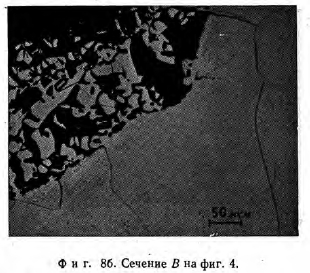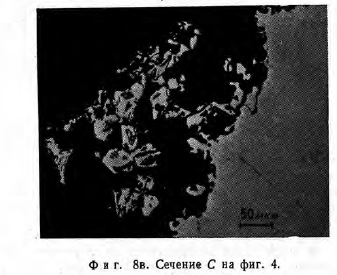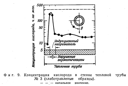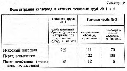 АНАЛИЗ ТЕПЛОВЫХ ТРУБ ПОСЛЕ РЕСУРСНЫХ ИСПЫТАНИЙАНАЛИЗ ТЕПЛОВОЙ ТРУБЫ № 1 (Nb—IZr/LI) Спектрохимический анализ. Спектрохимический анализ тепловой трубы № 1 показал, что в зоне коррозии наблюдается увеличение содержания Fe, Са и Mg. Известно, что Та хорошо совместим с Mg [8] при температуре 1150°С и, кроме того, Та используется в качестве конструкционного материала для Са при 1800 °С [9]. Подобную устойчивость можно было бы ожидать и от Nb; тепловые трубы из Nb с Mg [101 или Са [11] в качестве рабочих сред проработали короткие промежутки времени без аварии. Поэтому следы Са или Mg не могли быть причиной коррозии. С другой стороны, Fe образует легкоплавкие эвтектики как с Nb, так и с Zr 112,13]. Для того чтобы проверить способность Fe вызывать коррозию, были проведены некоторые химические исследования. Результаты этих исследований свидетельствуют о том, что нет заметной разницы между концентрацией Fe в материале стенки перед началом испытаний (150 ч. на млн.) и концентрацией Fe в зоне охлаждения (180 ч. на млн.) после испытаний, в то время как концентрация Fe в зоне нагрева в месте разрушения стенки превышает начальную концентрацию более чем в два раза (380 ч. на млн.). На основе этих данных можно сделать вывод о том, что более 50 ч. на млн. Fe были вынесены из стенки в зоне охлаждения и перенесены в зону нагрева. Из сравнения этого количества Fe с количеством растворенного Nb можно было бы заключить, что на каждый атом Fe растворяется более 10 атомов Nb. Однако сомнительно, может ли Fe обусловить такую сильную растворимость Nb. Для того чтобы решить этот вопрос, тепловые трубы № 3 и 4 были сделаны из материала с более низким содержанием Fe. С этой целью технология изготовления, тепловых труб была усложнена за счет травления металлических частей, поскольку было найдено, что поставляемые трубы с канавками_быди JB значительной степени загрязнены Fe. Тепловая труба № 3 содержала только 50 ч. на млн, на Fe, но она не дала существенного увеличения ресурса работы. Таким образом, был сделан вывод, что Fe не является основной причиной коррозии. ![]() Анализ микрозондами. На фиг. 8 представлены три сечения тепловой трубы № 1. В каждом случае можно увидеть часть стенки и коррозионные осаждения. Можно заметить, что в сечениях А и С на концах зоны нагрева кристаллы имеют изъяны и небольшие включения (3 и 4 на фиг. 8а), однако этого нет в сечении В в месте разрушения стенки. Сечение А было исследовано с помощью микрозонда (Cameca MS 46) на все элементы периодической системы. ![]() Были получены следующие результаты. Стенка тепловой трубы (У): 98 ± 1,5% Nb и 0,8% Zr. Небольшие зоны 10-8 мм, обогащенные железом, на внутренней и внешней поверхностях. Основное осаждение (2): ~ 100% Nb и 0,03 ± 0,015% Fe. Изъян кристалла (3): 71% Nb и 2,5% О. Измеренная концентрация кислорода, вероятно, слишком занижена. Необходимо учитывать присутствие Li. Небольшие включения (4): 83% Nb, других элементов не обнаружено. Однако присутствие Li неправдоподобно, так как анализ стенки тепловой трубы (/) свидетельствует о незначительной растворимости Li в Nb. ![]() Эти данные подтверждают присутствие Fe, обнаруженного спектрохимическим анализом. Существенным новым результатом является обнаружение кислородного обогащения осадков (3) вблизи обоих концов зоны нагрева. ![]() Определение кислорода. Концентрация кислорода была определена в трубе с канавками в состоянии поставки и после ресурсного исп
