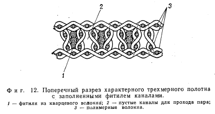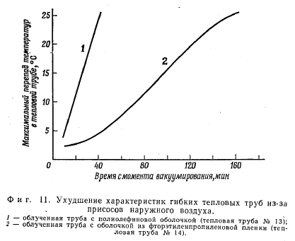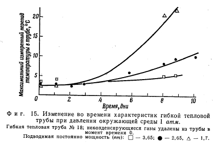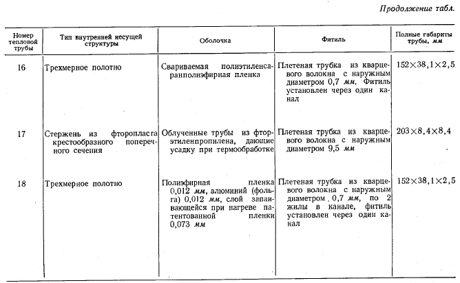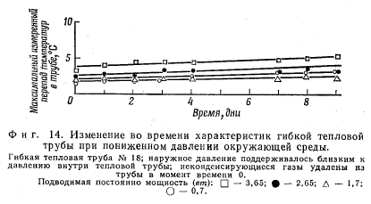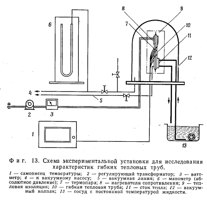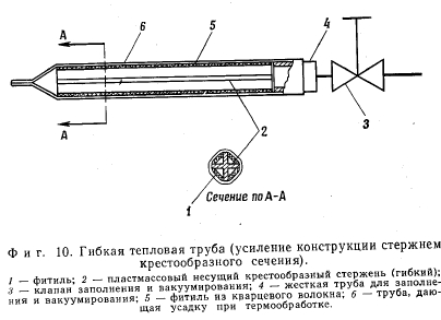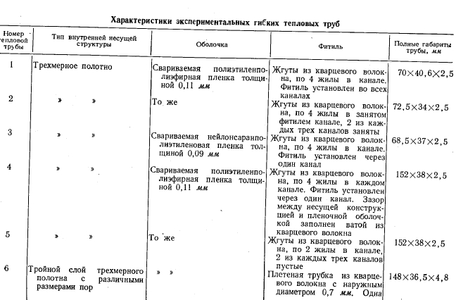 ГИБКИЕ ТЕПЛОВЫЕ ТРУБЫДля регулирования температуры человеческого тела в космическом скафандре необходимо обеспечить отвод тепла от кожи человека. Для этой цели необходимо разработать достаточно гибкую конструкцию тепловых труб, которая обеспечивала бы перемещения человеческого тела, а также его мускульную активность, расширение грудной клетки и брюшной полости. Эти тепловые трубы должны находиться в контакте с кожей человека, т. е. работать в атмосфере, существующей внутри космического скафандра. Стенки гибкой тепловой трубы неизбежно оказываются в какой-то мере проницаемыми для паров рабочей жидкости. Поэтому требовалось выбрать в качестве рабочей жидкости вещество, которое было бы безопасным, невоспламеняющимся и не могло бы служить источником загрязнения атмосферы в скафандре. В результате анализа возможных рабочих жидкостей выяснилось, что вода будет, по-видимому, наиболее подходящим для этих целей веществом. Однако при использовании воды в качестве рабочей жидкости в гибкой тепловой трубе, расположенной в находящемся под давлением космическом скафандре, возникает ряд проблем. В области температур, характерных для работы космического скафандра, т. е. при температурах, равных или ниже температуры кожи человека (~33 °С), давление внутри тепловой трубы окажется намного ниже давления среды в космическом скафандре. Давление внутри используемых в настоящее время космических скафандров с атмосферой кислорода составляет примерно 0,25 кг/см2. В разрабатываемых усовершенствованных космических скафандрах будут использоваться смеси газов при больших давлениях. Поскольку рабочая жидкость в тепловой трубе находится в состоянии насыщения, давление внутри тепловой трубы при температуре 33 °С составит всего лишь ¦—0,05 кг/см2. Тем самым гибкая тепловая труба с водой в качестве рабочей жидкости, работающая в указанном интервале температур, будет смята наружным давлением. Поэтому ключевым вопросом в деле создания тепловых труб для регулирования температуры в космических скафандрах является разработка гибких полых конструкций, способных противостоять, не разрушаясь, внешнему давлению. даже если из них полностью откачан газ. Были проанализированы и экспериментально опробованы некоторые возможные решения этой проблемы. Они включали «усиление» изнутри гибких труб с помощью спиральных пружин или гибких, эластичных вставок крестообразного или звездообразного поперечного сечения, а также «усиление» плоских панелей с помощью изготавливаемого промышленным способом «трехмерного полотна». Это полотно изготавливается следующим образом. В продольном направлении ткутся два различных волокна и одно волокно — в поперечном направлении. При термообработке эти волокна дают различную усадку. В результате полотно «вспучивается» и приобретает трехмерную структуру. Получающееся при этом полотно представляет собой по существу трехмерную сетку или решетку с большими поперечными порами и параллельными продольными каналами, наподобие волнистого картона, изготовленного из сетчатого материала. В настоящее время имеются различные полимерные материалы с разной толщиной волокна, эластичностью и сопротивляемостью разрушению давлением. 4 Применение эластичных внешних оболочек, усиленных изнутри для предотвращения разрушения ко