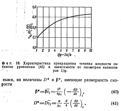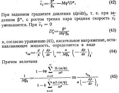 ПРЕКРАЩЕНИЕ ДВИЖЕНИЯ ЖИДКОСТИКак уже отмечалось во введении, при больших нагрузках тепловой трубы вследствие трения пара может полностью прекратиться течение жидкости и возникнут неустойчивости [5]. Для исследования этих условий целесообразно заменить безразмерные величины D и р, которые при vt— 0 ![]() Среднюю скорость жидкости по уравнению (23) с учетом уравнений (21) и (22) вычисляют как ![]() зависит, только от ф и, таким образом, является постоянной, определяемой геометрией капилляров. Зависимость ММ Р0 от 1/ф приведена на фиг. 16. Для заданного градиента давления при движении жидкости можно определить касательное напряжение, при котором vt = 0. |