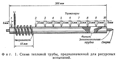 РЕСУРСНЫЕ ИСПЫТАНИЯ КОНСТРУКЦИЯ ТЕПЛОВОЙ ТРУБЫТепловая труба, изготовленная из нержавеющей стали марки 347, имела длину 300 мм и внешний диаметр 19 мм, толщина стенки трубы составляла 0,9 мм. Фитиль состоял из сетки, изготовленной из нержавеющей стали марки 304, с ячейками 100 меш. Сетку, свернутую в виде цилиндра в три слоя, помещали в тепловую трубу и специальной стальной протяжкой прижимали к стенке. Труба закрывалась с обоих концов приваренными пробками. В один из торцов вваривалась трубка внешним диаметром 6 мм для загрузки рабочей жидкости и герметизации под вакуумом. Перед сборкой все элементы тепловой трубы были дегазированы при температуре 1000 °С в вакуумной печи. Источником тепла служил нагреватель сопротивления, навитый змеевиком вокруг зоны испарения на длине 55 мм. Температура измерялась хромель-алюмелевыми термопарами, приваренными вдоль трубы, как показано на фиг. 1. После того как тепловая труба была собрана и испытана на герметичность, в нее загрузили 122 г чистой ртути через заполнительную трубку, опущенную под уровень в другой сосуд с ртутью. Магниевая проволока в количестве 0,01 г и титановая проволока в количестве 0,005 г были загружены в тепловую трубу через заполнительную трубку для обеспечения смачивания и предотвращения коррозии. Затем тепловую трубу соединяли с вакуумной системой и вакуумировали в течение ночи для того, чтобы извлечь неконденсирующиеся газы. Отключение от вакуумной системы производилось сплющиванием соединительной трубки с последующим отвариванием в этом месте. ![]() Перед тем как прикрепить термопары и основной нагреватель, на трубу наматывали по всей длине ленточный нагреватель и производили нагрев трубы до 400 °С в течение двух дней для обеспечения смачивания. В течение этого периода трубу поворачивали вокруг поперечной оси, чтобы смочить все части внутренней поверхности. Радиографический контроль показал, что после таких операций было достигнуто только частичное смачивание. После этого еще раз в течение двух дней повторяли операцию, но уже при температуре 500 °С, и было получено, как показал радиограф, полное смачивание. С помощью радиографа было также показано, что однажды смоченная поверхность вновь легко смачивается после осушения. Так, например, если один конец тепловой тр>бы поднимался выше высоты капиллярного поднятия, то ртуть из него стекала. Если затем поднимался другой конец трубы, то осушенный конец вновь хорошо смачивался. В дальнейшем хорошее смачивание было продемонстрировано работой тепловой трубы и результатами исследования капиллярного поднятия в фитиле. В этих опытах испарительная часть трубы постепенно поднималась до тех пор, пока не превышался вертикальный размер, на который жидкость могла подниматься по фитилю. В этот момент фитиль в испарителе высыхал и температура быстро повышалась, что обнаруживалось по показанию термопары на конце трубы. Измеренная высота капиллярного поднятия находилась в хорошем соответствии с расчетной величиной, полученной с учетом размера ячейки сетки фитиля. Это означало также, что достигалось хорошее смачивание и что добавка магния и титана не уменьшала существенно поверхностного натяжения ртути. |