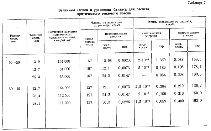 ВЫВОДЫВ настоящей работе структура фитиля рабочего участка была выполнена из слоя не скрепленных металлических частиц. Слой удерживался таким образом, чтобы частицы всегда находились в хорошем контакте и фиксировались по месту. В опытах слой был затоплен водой и уровень воды превышал поверхность слоя шариков. Несмотря на то что конструкция рабочего участка не является типичной для тепловой трубы, она оказалась удобной для изучения механизма теплообмена при испарении в капиллярной структуре фитиля. ![]() Предполагается, что описанный выше механизм теплообмена справедлив и для работы тепловой трубы с известными свойствами структуры фитиля, находящегося в контакте с поверхностью нагрева. Можно предположить также, что рассмотренный механизм имеет место как в жидкометаллических тепловых трубах, так и в трубах, использующих в качестве теплоносителя воду. Последняя работа, проведенная в нашей лаборатории на аналогичной установке, с той разницей, что слой шариков не затоплялся жидкостью, а жидкость поступала к испарительному участку за счет действия капиллярных сил, как в работающей тепловой трубе, показала совпадение результатов, что подтвердило общность рассмотренного механизма процесса. Для тепловой трубы с артериальными канавками требуется некоторое изменение математической постановки задачи. На основе хорошего совпадения экспериментальных значений коэффициентов теплоотдачи и критических тепловых потоков с расчетными значениями, полученными из рассмотрения предложенного механизма, можно сформулировать следующие выводы: 1. Для значений тепловых потоков ниже критического механизм теплообмена при испарении жидкости из фитиля, находящегося на поверхности, определяется лишь теплопроводностью через тонкую пленку жидкости, находящуюся в контакте с поверхностью нагрева и удерживаемую капиллярными силами, существующими на границе раздела жидкость — пар внутри фитиля. В настоящей работе граница раздела жидкость—пар, по- видимому, располагалась у минимального диаметра поры в первом слое частиц у поверхности, в результате чего коэффициент теплоотдачи оставался практически постоянным. 2. Максимальный тепловой поток (критический тепловой поток) возникает, когда капиллярных сил недостаточно для удержания насыщенной пленки жидкости на поверхности нагрева. 3. Для материалов фитилей, находящихся в контакте с поверхностью нагрева, у которых известны значения пористости, высоты, капиллярного поднятия, проницаемости, можно рассчитать, согласно методам, изложенным в настоящей работе, коэффициент теплоотдачи и критический тепловой поток. |
