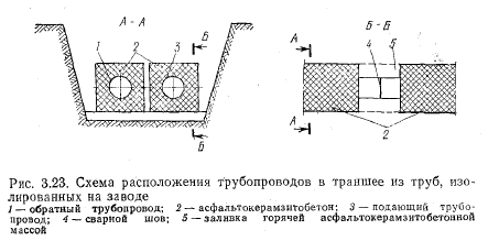 Бесканальные теплопроводы с изоляцией из асфальтокерамзитобетонаИзоляция бесканальных теплопроводов асфальтокерамзитобетоном предложена и разработана ВНИИГ им. Б. Е. Веденеева (Ленинград) совместно с Рижским отделением института Деплоэлектропроект. Конструкция теплоизоляции из асфальтокерамзитобетона представляет собой однослойную изоляционную оболочку цилиндрической или прямоугольной формы (рис. 3.22), комплексно выполняющую функции теплоизоляции, гидроизоляции, антикоррозионной и диэлектрической защиты. Ниже приведены физико-механические свойства асфальтокерамзитобетонной изоляции. ![]() ![]() Рубракс или тугоплавкий нефтяной битум — твердый продукт, получаемый из тяжелых остатков малосернистой и малопарафинистой нефти путем ее окисления в присутствии щелочи. При высокой температуре размягчения (125—150°С) рубракс обладает упругой пластичностью при низких температурах, чем выгодно отличается от твердых марок строительных битумов (например, БН-У), имеющих более низкую температуру размягчения, сочетающуюся с хрупкостью в холодном состоянии. Для производства рубракса пригодны только некоторые сорта нефти, поэтому его производство ограничено лишь несколькими нефтеперерабатывающими заводами. Рубракс обеспечивает теплостойкость асфальтокерамзитобетонной изоляции при температуре теплоносителя 150°С и выше. ![]() Для приготовления асфальтокерамзитобетонной массы, служащей для изготовления изоляции АКБ-150, применяют сплав рубракса с резиновой крошкой и машинным маслом, % (по массе): рубракс марки Ашли Б— 91; резиновая крошка — 5; машинное масло — 4. В зависимости от вязкости рубракса, процентное соотношение компонентов может изменяться (вплоть до исключения резиновой крошки). Для этого перед приготовлением сплава на основании лабораторных данных устанавливают оптимальный процентный состав компонентов. iB практике строительства тепловых сетей значительная часть теплопроводов эксплуатируется при температуре теплоносителя до 100°С, в том числе и все об-1 ратные магистрали тепловых сетей. Рижское отделение института Теплоэлектропроект и ВНИИГ им. Б. Е. Ведене- ева предложили заменить рубракс обычными строительными битумами. Для теплопроводов с температурой теплоносителя до 100°С при изготовлении изоляции АКБ-100 в качестве основного вяжущего, входящего в состав асфальтокерамзитобетона, используют строительный нефтяной битум марки БН-IV с температурой размягчения около 82°С. На основании проведенных исследований была подобрана теплоустойчивая асфальтокерамзитобетонная масса, состоящая из 95% битума нефтяного марки БН-IV (или смеси битумов марок1 БН-IV и БН-V) и 5% резиновой крошки. Объемная масса асфальтокерамзитобетона, а следовательно, и его теплоизоляционные свойства зависят в основном от объемной массы заполнителей, так как объемные массы вяжущего и наполнителя практически постоянны, в то время как объемная масса керамзитового гравия и песка колеблется в значительных пределах. Для изготовления асфальтокерамзитобетонной изоляции желательно применение легких керамзитов с объемной насыпной массой 250—400 кг/м3. Однако для этих керамзитов характерна недостаточная прочность зерен, что приводит к их раскалыванию и размельчению в процессе приготовления смеси, в конечном итоге к ухудшению прочностных характеристик