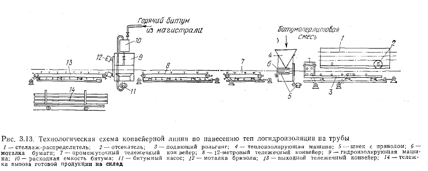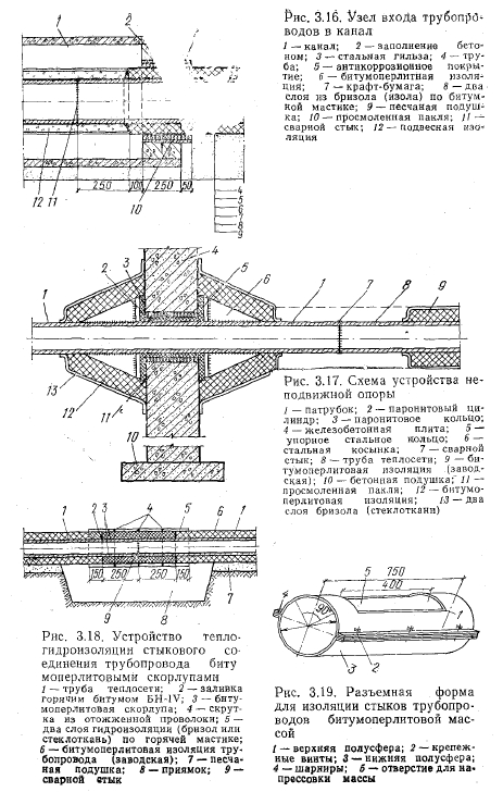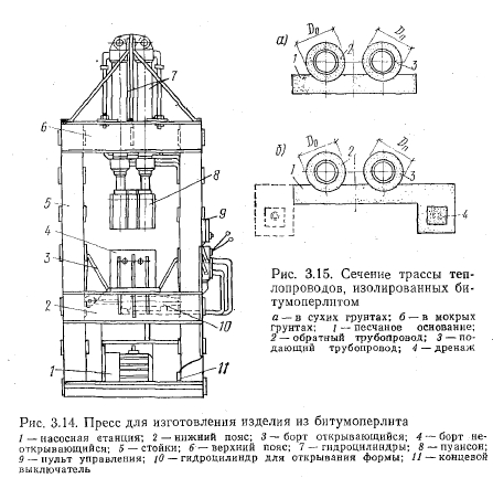 Бесканальные теплопроводы с битумоперлитной изоляциейКонструкция бесканальных теплопроводов с битумоперлитной изоляцией была разработана группой специалистов Главкиевгорстроя совместно с научными и проектными организациями Киева. Предложенная строительно-изоляционная конструкция для бесканальной прокладки теплопроводов состоит из антикоррозионного покрытия металлической трубы, теплоизоляционного слоя из битумоперлита и гидроизоляционного покрытия (рис. 3.8). Эта изоляция была рекомендована для бесканальной прокладки теплопроводов с расчетной температурой воды до 150°С при диаметре трубопроводов до 500 мм. ![]() Битумоперлит представляет собой смесь вспученного перлитового песка и нефтяного битума. Вспученный перлитовый песок — легкий теплоизоляционный материал, получаемый из перлитовой породы вулканического происхождения. По своему составу перлитовая порода состоит из кремнезема (около 75%), щелочей и воды, а по внешнему виду очень напоминает искусственное стекло. Поэтому перлит иногда называют природным или вулканическим стек- лом. Значительной особенностью перлита является его способность к вспучиванию при обработке. При быстром нагревании до температуры 1000—1200°С перлит переходит в вязкое состояние, а пары воды, находящиеся в породе, разрывают и вспучивают частички материала. При этом объем перлитовой породы увеличивается-в 10—15 раз. Та-1 ким образом, из перлитовой породы с объемной массой 1400 кг/м3 получается перлитовый песок с объемной массой 50—200 кг/м3. Проведенные геологические исследования показали, что наша страна располагает практически неисчерпаемыми запасами перлитов в различных районах, исчисляемыми сотнями миллионов тонн. В последние годы в стране построены мощные установки для производства вспученного перлита. Большой коэффициент вспучивания делает экономичной транспортировку перлитовой породы на значительные расстояния к местам переработки. Вспучивание перлита производят обычно в вертикальных шахтных печах производительностью от 15 до 45 тыс. м3 вспученного перлитового песка в год. Типовые конструкции таких печей разработаны институтами Теплопроект (Московская обл.) и НИИСМИ (Киев). Производство вспученного перлитового песка в зависимости от объема выпуска изолируемых труб может быть организовано непосредственно на предприятии, где на трубы наносится битумоперлитная изоляция. При небольшой мощности завода по выпуску изолированных бигумоперлитом труб вспученный перлитовый песок получают с ближайших заводов, где налажено его производство. Вспученный перлитовый песок представляет собой превосходный теплоизоляционный материал, обладающий пористой структурой, низкой объемной массой, малым коэффициентом теплопроводности, высокой термостойкостью и достаточной прочностью. Кроме того, он обладает химической инертностью и способностью хорошо связываться со многими традиционными вяжущими, образуя бетоны и растворы с различными физико-механическими свойствами. Для получения битумоперлитовой изоляции применяют перлитовый песок объемной массой 80—150 кг/м3 и с коэффициентом теплопроводности в сухом состоянии при температуре 15±5°С не более 0,046—0,058 Вт/ (м-°С) [0,04— 0,05 ккал/(м-ч°С)]. Технология изготовления битумоперлита очень проста и не требует дорогостоящего оборудования. Приготовле