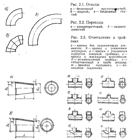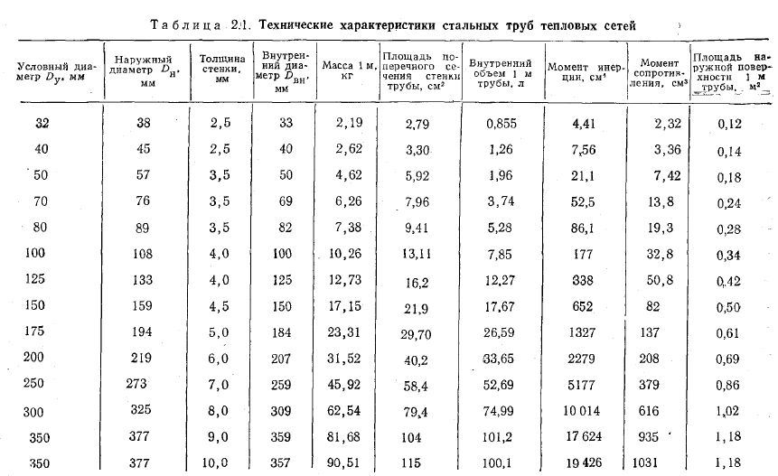 Трубы и их соединенияТрубопроводы являются основным и наиболее ответственным видом конструкций тепловых сетей. Они должны обладать следующими основными свойствами: высокой механической прочностью и герметичностью при рабочих параметрах теплоносителя; коррозионной стойкостью; неизменяемостью свойств материала труб при длительном воздействии теплоносителя; иметь малую шероховатость внутренней поверхности; малый коэффициент линейного температурного удлинения и высокое сопротивление теплопередаче стенок труб; простоту, надежность и герметичность соединений отдельных элементов; отличаться простотой хранения, транспортировки и монтажа; небольшой стоимостью. Однако применяемые в строительстве типы труб отвечают далеко не всем предъявляемым требованиям. В настоящее время для строительства тепловых сетей в основном применяют стальные трубы из стали марок Ст2 СтЗ, СтЮсп, Ст20сп, 10Г2С1, 15ГС, 16ГС. Преимущественное применение стальных труб для тепловых сетей обусловлено их высокими механическими качествами и эластичностью, а также возможностью, использования сварки, которая обеспечивает надежность и герметичность соединения. Выбор материалов для трубопроводов и арматуры тепловых сетей следует производить в соответствии с требованиями «Правил устройства и безопасной эксплуатации трубопроводов пара и горячей воды» Госгортехнадзора СССР. Согласно этим правилам трубы, запорно-регулирующая арматура, фланцы и другие устройства подбирают по условным давлениям и проходам. Под условным давлением ру понимают наибольшее избыточное давление, допустимое для длительной эксплуатации трубы или изделия при температуре 20°С. С повышением температуры теплоносителя допустимое давление должно уменьшаться, и это фактическое допустимое давление называется рабочим. Рабочее (расчетное) давление — это наибольшее давление при заданной температуре среды. Для температуры теплоносителя до 200°С условное давление равно рабочему. Под условным проходом Пу подразумевают номинальный внутренний диаметр трубы или изделия. Трубы с определенным условным диаметром имеют постоянный наружный диаметр и отличаются лишь толщиной стенки. Трубопроводы разделяют по параметрам теплоносителя на категории. Для тепловых сетей определяющими являются следующие параметры: 1) для подающих и обратных линий водяных тепловых сетей — максимальная температура в подающей линии и наибольшее давление воды в трубопроводах с учетом рельефа местности и работы подкачивающих насосных подстанций на тепломагистрали; 2) для трубопроводов систем горячего водоснабжения — температура 75°С, наибольшее давление в подающем трубопроводе. В тепловых сетях применяют в основном бесшовные горячекатаные и электросварные трубы. Бесшовные горячекатаные трубы (ГОСТ 8732—78) выпускают с наружными диаметрами 32—426 мм. Электросварные прямошовные (ГОСТ 10706—76) и со спиральным швом (ГОСТ 8696—74) изготовляют с наружным диаметром более 426 мм. Трубы водо- газопроводные (ГОСТ 3267—75) —обыкновенные и усиленные — допускается применять в тепловых сетях после центральных тепловых пунктов (ЦТП). Основные размеры и технические характеристики стальных труб тепловых сетей приведены в табл. 2.1. Бесшовные горячекатаные и электросварные прямошовные трубы с калиброванными торцами допускается исполь