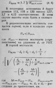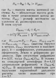 Влияние условий распространения радиоволн на характеристики радионавигационных средствПо закономерностям распространения в земной атмосфере радиоволны принято разделять на группы: прямолинейно распространяющиеся; поверхностные, пространственные и волноводного типа. Эти закономерности сказываются на дальности действия РНС и точности измерения. ![]() Прямолинейно распространяющиеся волны Такое распространение свойственно метровым, дециметровым и сантиметровым радиоволнам, т. г. УКВ диапазону. Высокая степень прямолинейности имеет место в горизонтальной плоскости и меньшая — в вертикальной. Земная поверхность своей шарообразной формой и рельефом местности служит экраном на пути прямолинейного распространения, и поэтому При рефракции в вертикальной плоскости дальность действия УКВ РНС не превышает дальности прямой видимости Duв, а в условиях рефракции — дальности радиовидимости D, Причем. Dmax является функцией высоты полета, высоты антенны РНТ и характера пролетаемой местности Вследствие этого дальность действия РНС должна быть рассчитана для каждого эшелона и маршрута полета. В практике самолетовождения принято определять Втах для равнинной и горной местностей. В радионавигации местность считается равнинной, если в пределах горизонта выполняется условие (рис 4.1). ![]() ![]() Высота полета, рельеф местности и рефракция радиоволн в вертикальной плоскости определяют максимальмо возможную дальность связи в УКВ диапазоне. Фактическая дальность зависит также от энергетического потенциала РНС и поглощения энергии в атмосфере. Она может быть существенно меньше D„„ и DpB. Радиомаячным УКВ РНС присущи погрешности измерения дальности и пеленга, обусловленные отражениями радиоволн от неровностей рельефа и местных предметов, оказывающихся в поле излучении РНТ Поле отраженных сигналов взаимодействует с основным рабочим полем и вызывает погрешности измерения, вследствие чего последние могут быть в несколько раз больше паспортных данных. Поверхностные волны. Радиоизлучения ДВ и СВ диапазонов способны распространяться, огибая поверхность земного шара. По мере перехода в область более длинных волн дальность нх распространения возрастает, причем она не зависит от высоты расположения передающей и приемной антенн. Поэтому поверхностные волны могут приниматься При больших и малых высотах полета. Им присуща довольно высокая степень постоянства направления распространения, «следствие чего они используются в угломерных системах Радионавигационным СВ и ДВ системам свойственны погрешности пеленгации, обусловленные ночным, береговым и горным эффектами. Для исключения ночного эффекта используются РНТ. находящиеся на расстояниях до 100— 150 км (береговым эффектом можно не считаться, если угол пересечения радиоволн с берегом превышает 20° или высота полета не меньше нескольких длин волн). Ошибки под действием горного эффекта существенны только при полетах вблизи гор и над горами ниже 1000—1500 м, и если между РНТ и воздушным судном имеются горы. Пространственные волны. Радиоизлучения КВ, СВ и ДВ, попадая на ионосферу, отражаются ею и возвращаются в приземные слои атмосферы. Затем они могут отразиться земной поверхностью и повторно — ионосферой, вследствие чего способны проникать далеко за горизонт. Траектория распространения 